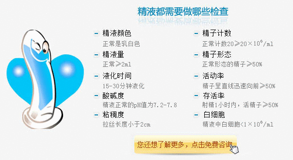 1、精液不液化症:一般正常的精液呈均匀流动液体,如果离体精液在室温下(22~25摄氏度)60分钟仍不液化或仍含有液化的凝集块,称为“精液不液化症”,则影响精子的凝集或制动,减缓或抑制精子正常运动。