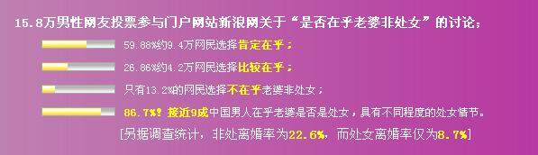 处男心声:我在乎。不是不能容忍,而是觉得委屈。我是处男,现在的女友不是处女,我很矛盾。