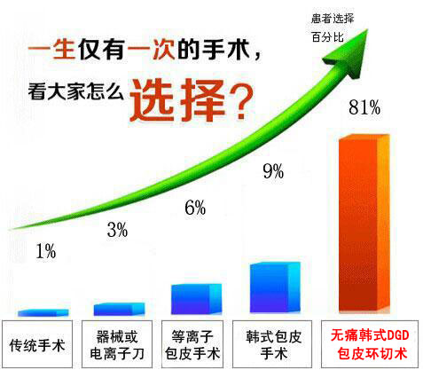 当你面对眼花缭乱、各式各样的包皮手术,实在无从选择,就像是站在十字路口不知道下一步的方向的时候,专家建议,不妨看看大多数男性是怎样选择的。(如图)