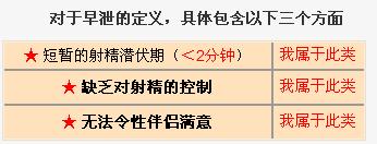 人们经常提起早泄疾病,但什么是早泄呢?人们从临床医学的角度看,早泄的临床表现主要就是在性生活的时候,男人的阴茎尚未与女方接触、或是刚接触、亦或是接触不久后,男方即发生了射精。通过这些能够看出来,早泄与正常的射精迅速现象,是特别难区分开来的。这也就让人们特别难从时间标准上去界定什么才是真正意义上的早泄。
